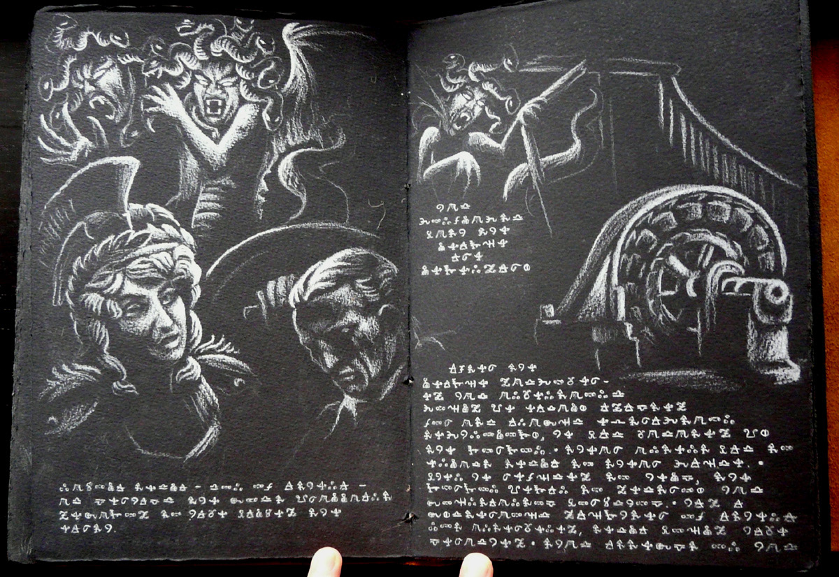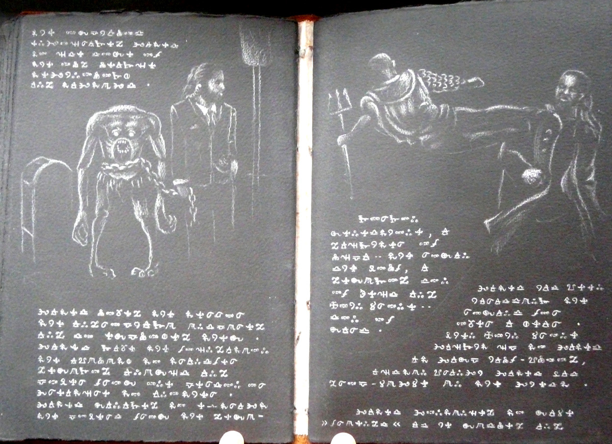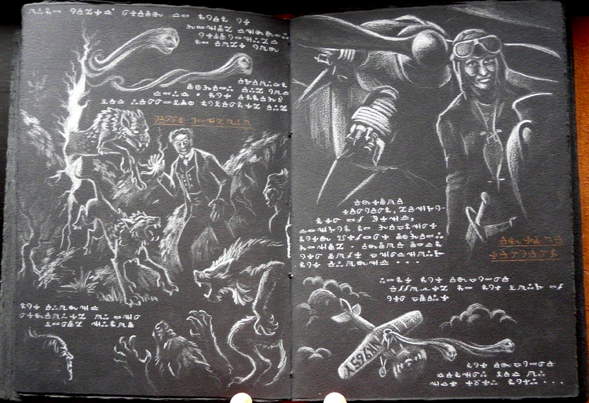 The following are a few samples from dozens of pages of camp journal (prop) pages telling a story over several years.