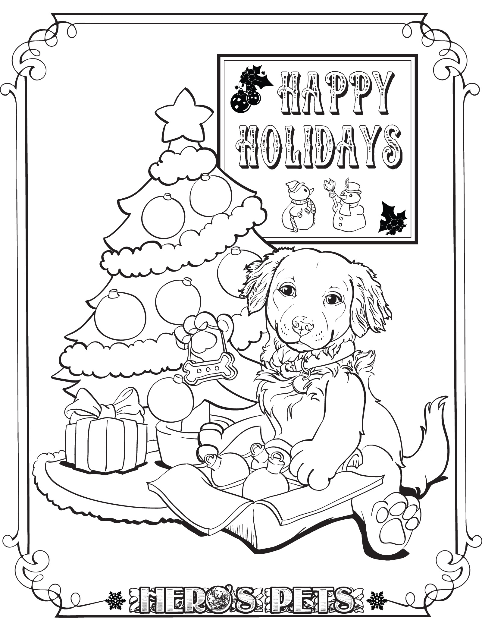 Holiday coloring book page drawn in Adobe Illustrator.